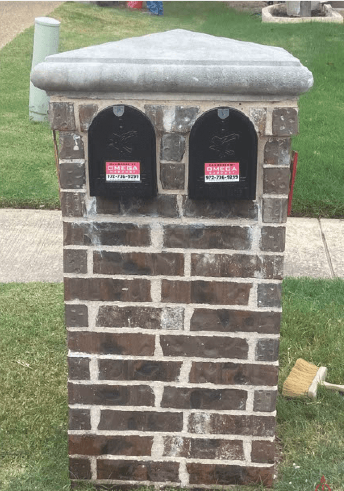 A mailbox’s hardware needs to be replaced if it starts rusting causing water to get into the mail, or after getting damaged from a vehicle’s impact. We remove the hardware and replace it with a new Gibraltar Classic Medium hardware. Omega Masonry provides all the materials and labor to complete the job.